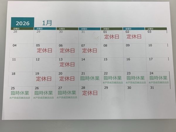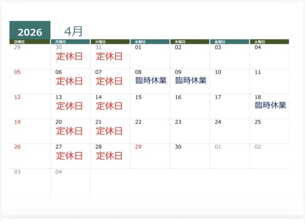 定休日カレンダー